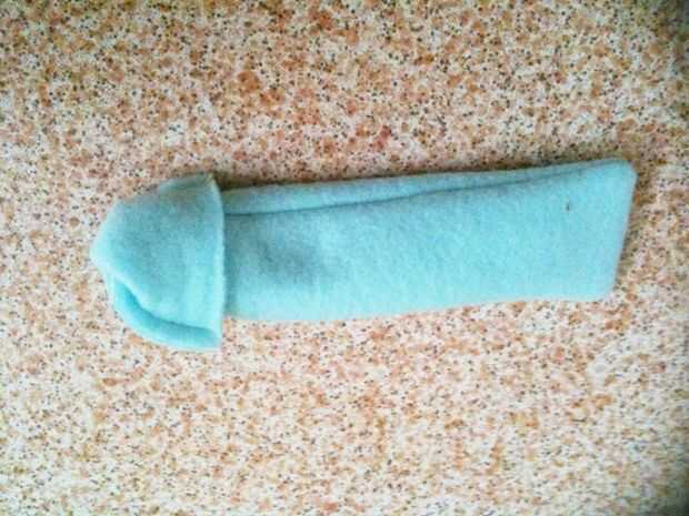 Tome el pequeño polar azul y doblar en 2 para que tenga un tubo rectangular de 6 "x 1,5".