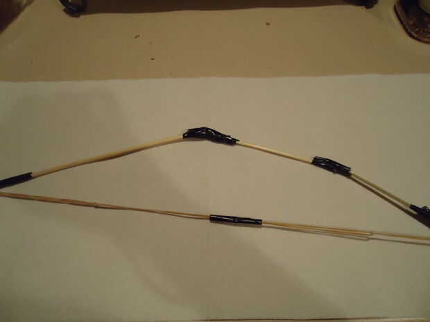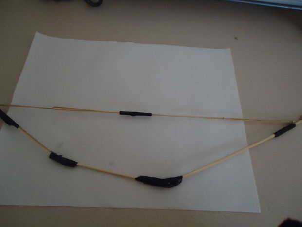 a continuación, tome 3 a 4 bandas de goma y corbata ellos juntos que ahora debe tener un lazo de cuerda para el arco y conducto cinta adhesiva para que no sale.
