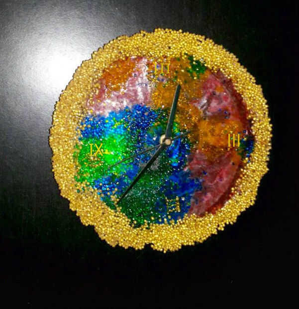 Retire suavemente el papel de aluminio. La hoja puede permanecer pegada en lugares pero no te preocupes nadie notará lo, que va a ser la parte posterior del reloj. También puesto que los cristales son translúcidos un poco de papel de aluminio en el fondo añade un efecto de buen brillo.