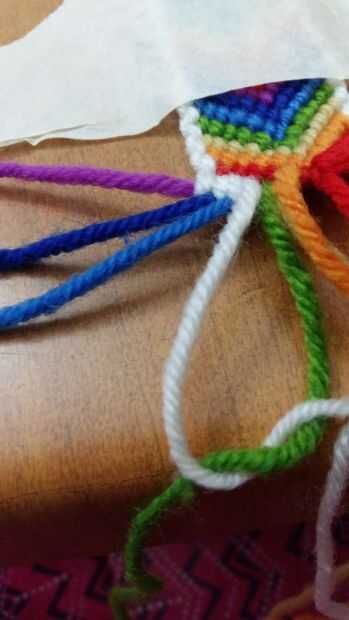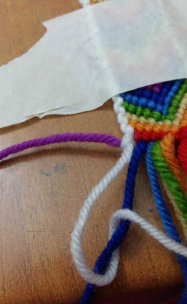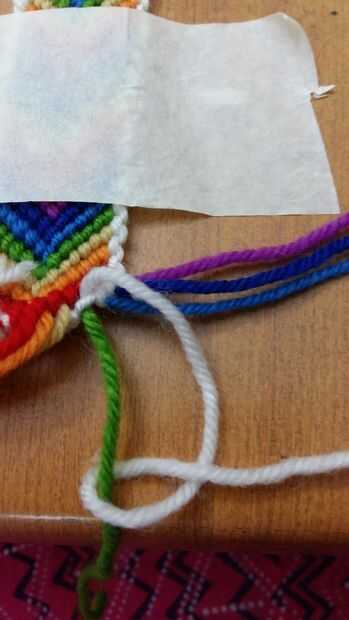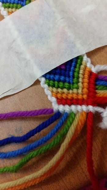 Paso 1: materiales Telar del arco irisBandasGanchoPaso 2: Colocación de bandas Tomar una banda primero ir de media peg a enfrente de él. Luego tomar dos bandas y hacer lo mismo en la fotografía. Ir de media ped en la clavija correcta diagonaly, hacer