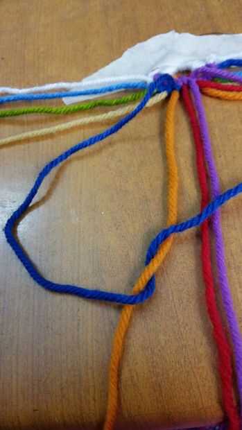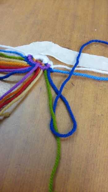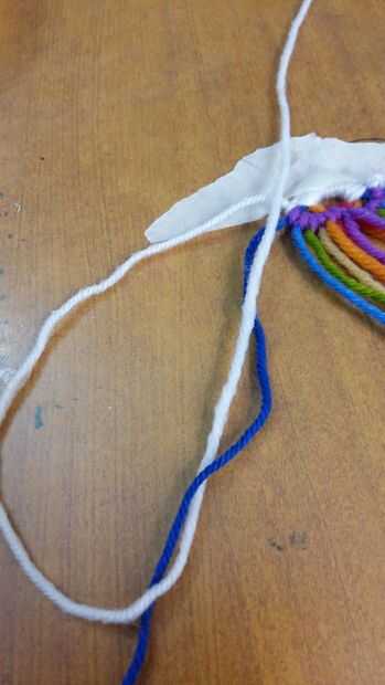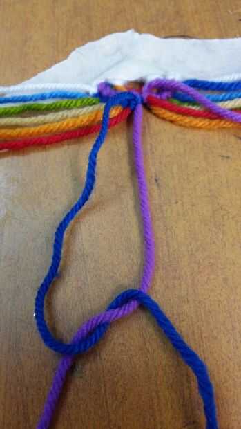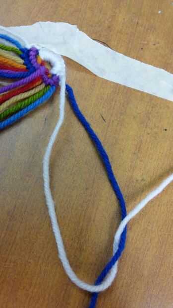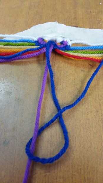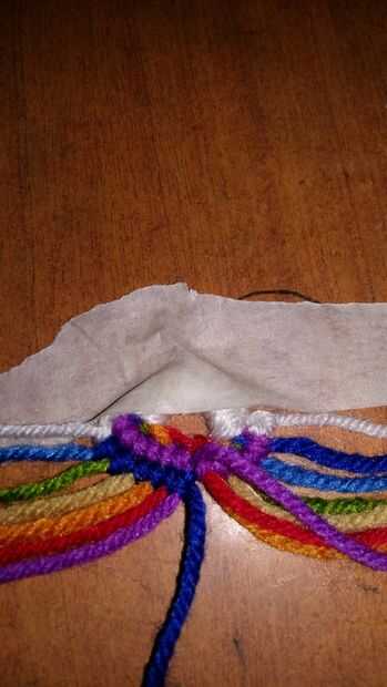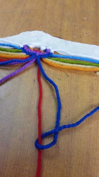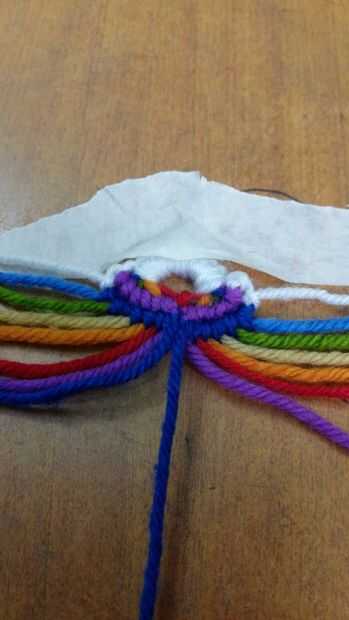 Paso 1: materiales Telar del arco irisBandasGanchoPaso 2: Colocación de bandas Tomar una banda primero ir de media peg a enfrente de él. Luego tomar dos bandas y hacer lo mismo en la fotografía. Ir de media ped en la clavija correcta diagonaly, hacer