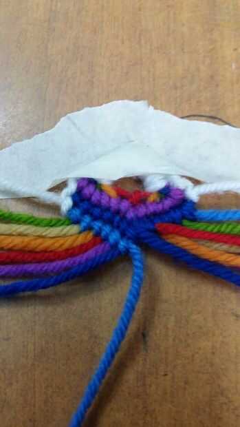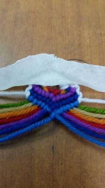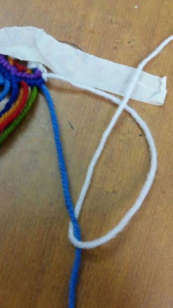 Paso 1: materiales Telar del arco irisBandasGanchoPaso 2: Colocación de bandas Tomar una banda primero ir de media peg a enfrente de él. Luego tomar dos bandas y hacer lo mismo en la fotografía. Ir de media ped en la clavija correcta diagonaly, hacer