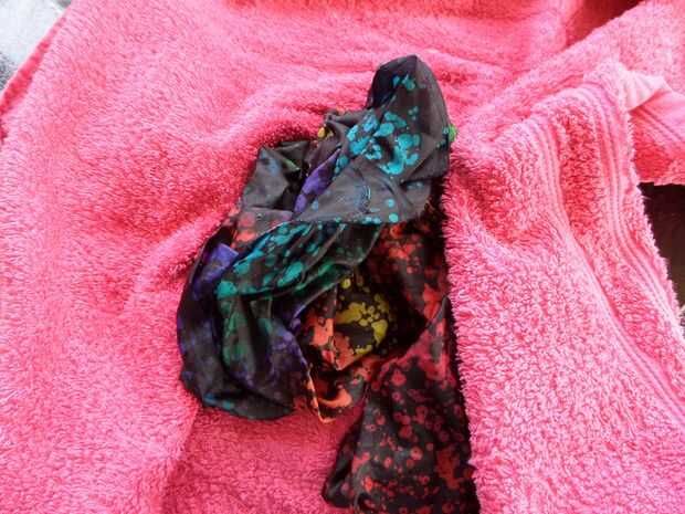 Proyecto de abrigo de seda de Tie-Dye de arco iris! Una manera simple de hacer algo especialmente agradable. ¿Donde mas puede usted conseguir atado en nudos, teñido, poner en agua caliente, que salen incluso más hermosa que antes? Aquí!Esta técnica s