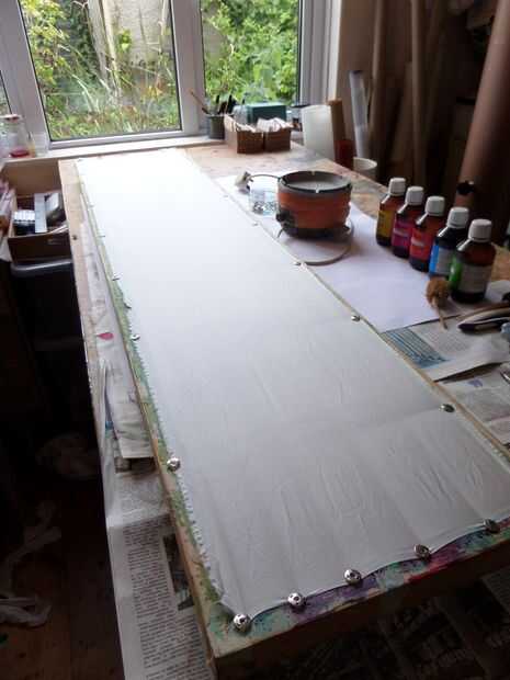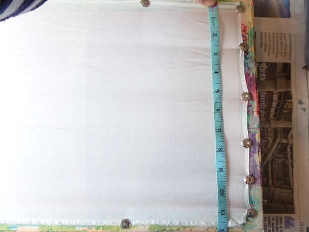 Estirar la seda bastante bien en el marco con los pernos de seda de 3 puntos.