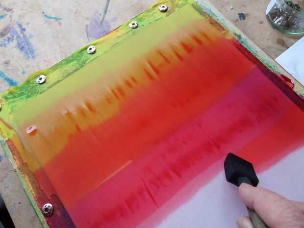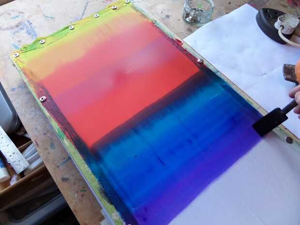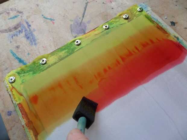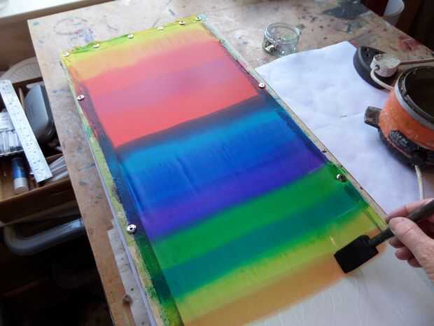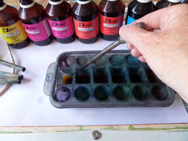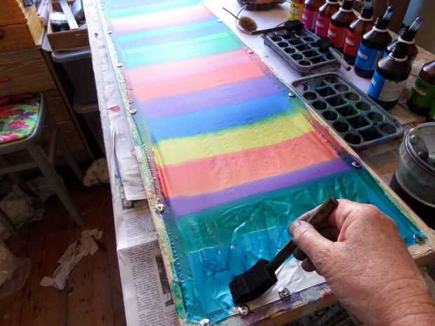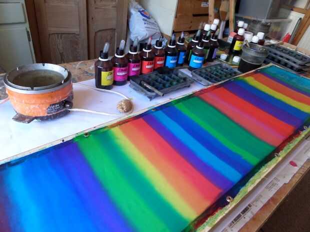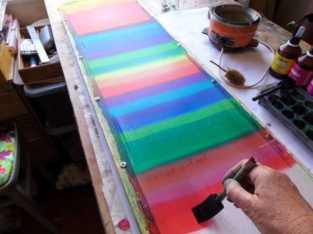 He trabajado a lo largo de la seda con diferentes proporciones de los tintes al azar.