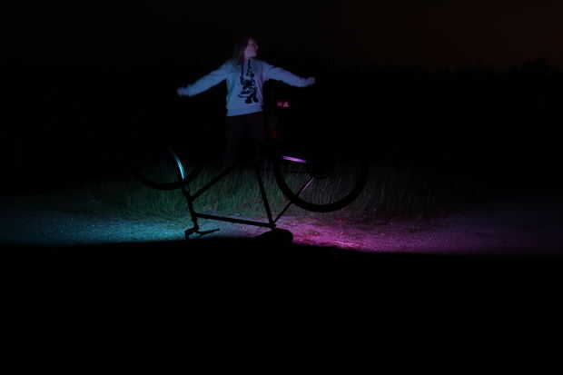 A continuación yo necesitaba ayuda y por suerte mi hermana y mi sobrina querían venir a jugar! Por eso elijo un camino agradable tranquilo y oscuro que también tuvo un cruce y una curva por lo que podría configurar la cámara en un trípode en el cruce tomar una larga exposición como la moto iba por el camino. Tomó un poco de experimentación para obtener algunas lindas fotos (raros) pero era parte de la diversión!