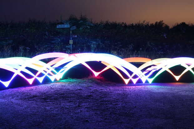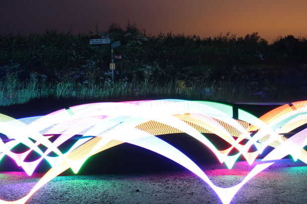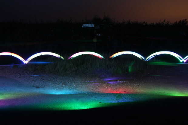 Una de las mejores fotos se hizo cuando Lydia montó a la hora de salida 5 o 6, porque las luces están sólo en un lado tienes las luces con arcos en el fondo y colores en la pista delante de la cámara. Tiempos de exposición de unos 50 segundos para el resplandor naranja para mostrar en el fondo que añade un agradable efecto!