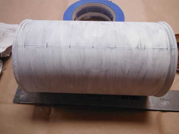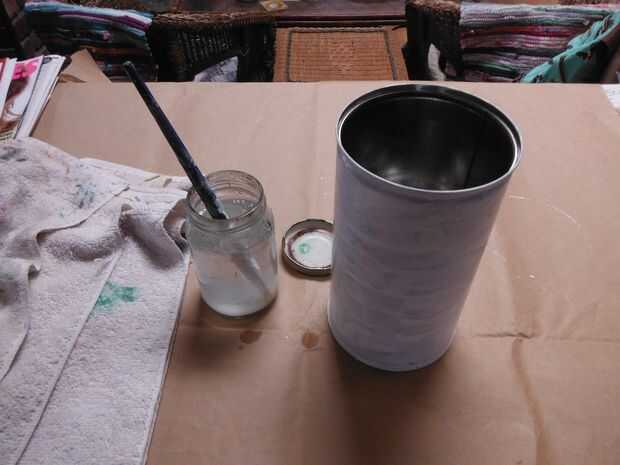 Para empezar, cubre la lata con yeso y cuando se seca, divididas en espacios de arco iris.