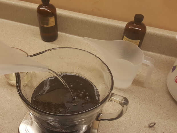 Como las grasas se derriten, preparar dos sistemas de color y fragancia.