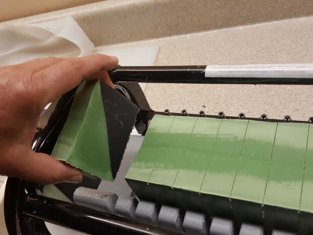 Al día siguiente, la barra seguirá siendo bastante suave, pero es el momento de cortar. Utilizar una plataforma que tiene alambre de piano. Este maravilloso dispositivo hará cortes perfectos 10 en un momento.