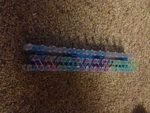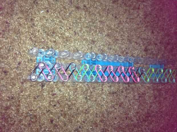 se necesita: un telar del arco iris, bandas de goma, un gancho y S ' clip o clip de 'c'Paso 1: Colocación de las bandas Hacer una figura 8 y dos bandas más sobre él.Paso 2: tejer Tire la segunda banda a un lado de la figura 8 entonces llevar al otro