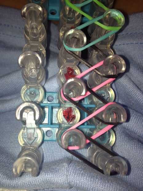 se necesita: un telar del arco iris, bandas de goma, un gancho y S ' clip o clip de 'c'Paso 1: Colocación de las bandas Hacer una figura 8 y dos bandas más sobre él.Paso 2: tejer Tire la segunda banda a un lado de la figura 8 entonces llevar al otro