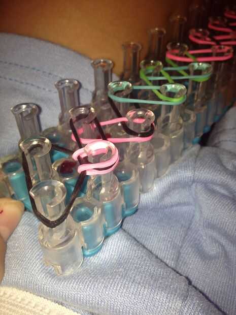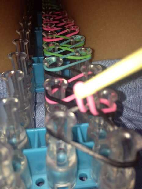 se necesita: un telar del arco iris, bandas de goma, un gancho y S ' clip o clip de 'c'Paso 1: Colocación de las bandas Hacer una figura 8 y dos bandas más sobre él.Paso 2: tejer Tire la segunda banda a un lado de la figura 8 entonces llevar al otro