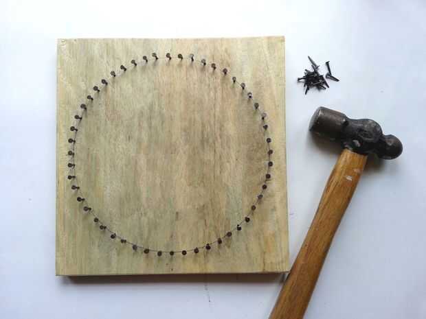 ¿Hacer marca? Ahora empezar a martillar los clavos en los puntos marcados a lo largo del círculo trazado.
