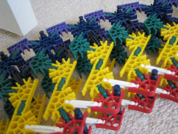 1. Tome 2 pares de color y attatch ellos como se muestra. No te olvides attatch el fondo demasiado!