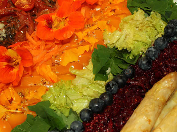 Utilizamos un montón de fruta y flores en ensaladas, por lo que esto me dio libre reinado de algún color vibrante.