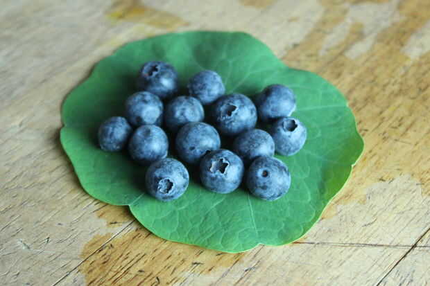 Arándanos en temporada aquí en el momento y son deliciosos. Siempre añadir algún tipo de fruta a nuestra ensalada y porque se trata de Normandie, a menudo manzanas. Sin embargo también crecen muchas frutas de baya en el jardín como frambuesas, moras y moras, que son deliciosos con verduras.