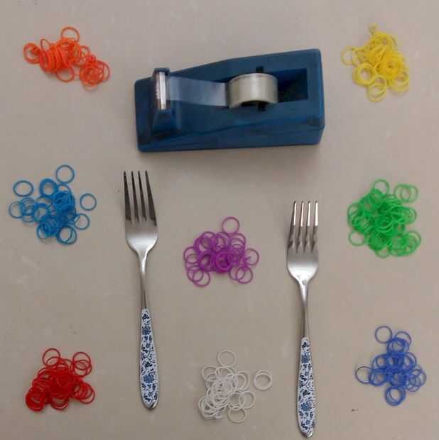 para hacer una pulsera de cola de pescado necesita un telar, pero ¿qué pasa si no tienes uno y no quieres usar los dedos? Bien puedes hacer uno de artículos para el hogar que todo el mundo tiene.Paso 1: materiales Necesita tus gomas, su gancho y un t