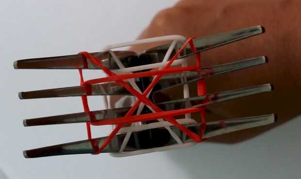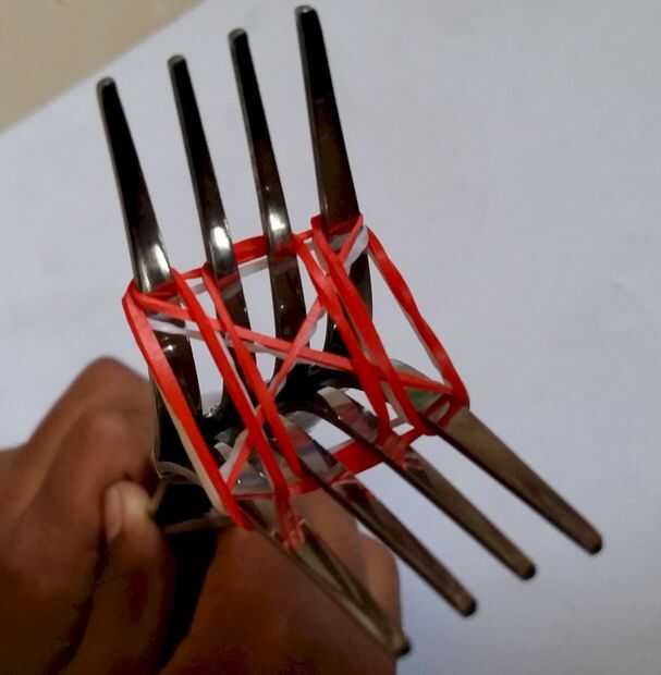 • Tomar la otra roja y gancho en el mediados 2 puntas de las horquillas