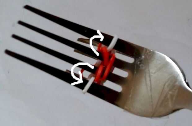 Giro de chicloso o pulsera del infinito en el telar del arco iris