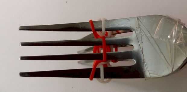 • Ver la primera foto... hacia la banda de los 2 dientes mediados puntas respectivas esquina... repetición de ambos lados de la horquilla