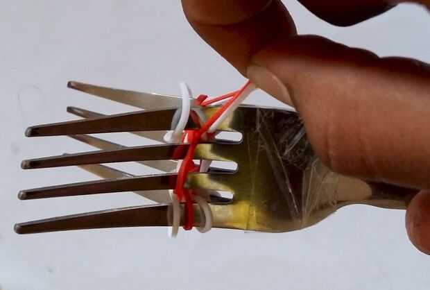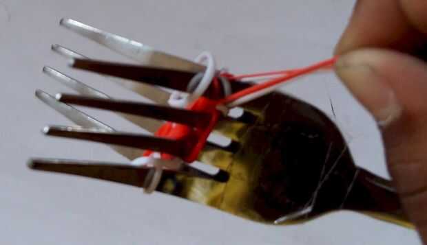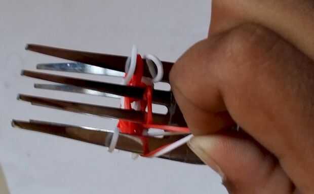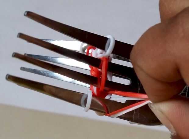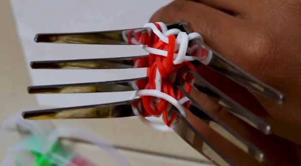 Giro de chicloso o pulsera del infinito en el telar del arco iris