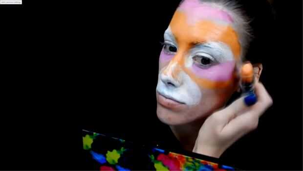 este es un look muy fácil y divertido para todo lo que usted está dispuesto a asistir con arco iris en su cara.Para hacer este look, es necesario:-Cartilla párpados-Sombra de ojos en violeta, azul, verde, amarillo, naranja y rojo-Brillo o delineador