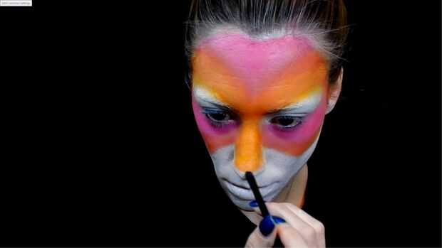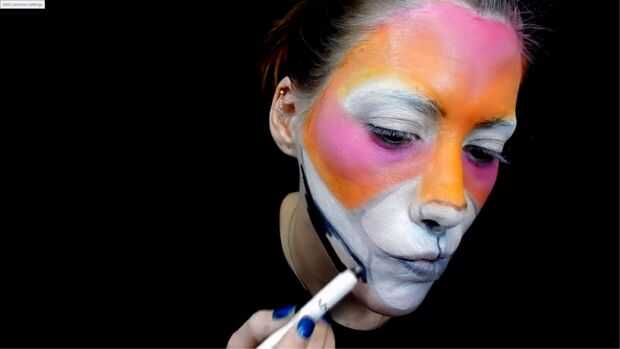 este es un look muy fácil y divertido para todo lo que usted está dispuesto a asistir con arco iris en su cara.Para hacer este look, es necesario:-Cartilla párpados-Sombra de ojos en violeta, azul, verde, amarillo, naranja y rojo-Brillo o delineador
