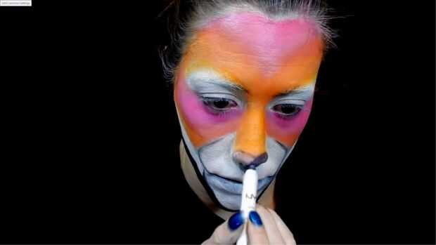 este es un look muy fácil y divertido para todo lo que usted está dispuesto a asistir con arco iris en su cara.Para hacer este look, es necesario:-Cartilla párpados-Sombra de ojos en violeta, azul, verde, amarillo, naranja y rojo-Brillo o delineador