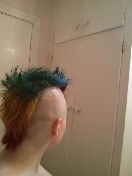 Esto no es una guía definitiva, sino más bien lo que funcionó para mí. No he encontrado un montón de información sobre la creación de un arco iris mohawk, así que espero que esto será útil para alguien.
