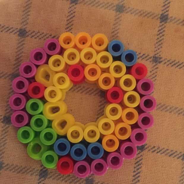 Levante papel planchado de granos. Quitar granos de pegboard. Voltee el círculo. Repita el paso 8 y 9.