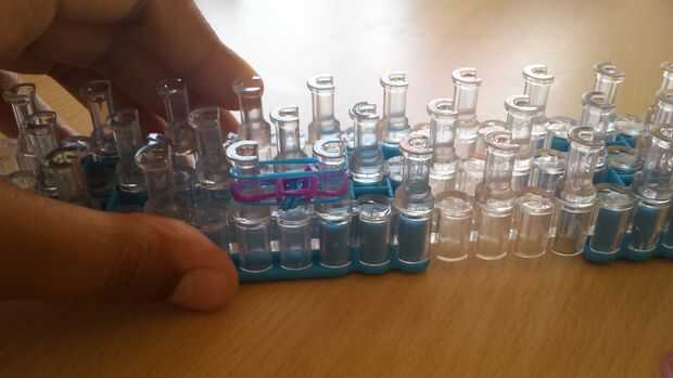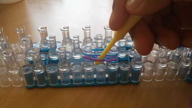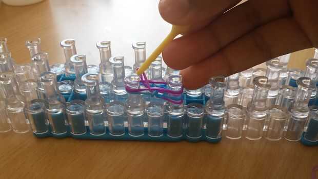 así es como luce la pulsera de cola de pescadoPaso 1: Tomar una de sus bandas de goma y enrosque en un ochoPaso 2: Colocarla en el telarPaso 3: Añadir una banda elástica que no se tuerce en un ochoPaso 4: Agregar otra banda de gomaPaso 5: Tomar su ga