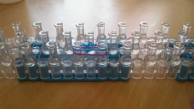 hoy voy a mostrarte cómo hacer un invertido espina de pescado cruzado en el telar del arco iris.Paso 1: No sé cuántas bandas usé pero necesito 1 c clip.Paso 1 el telar debe ser recto y una x pero hacer una figura 8.Paso 2: Paso 2 Añadir 3 no capas fu