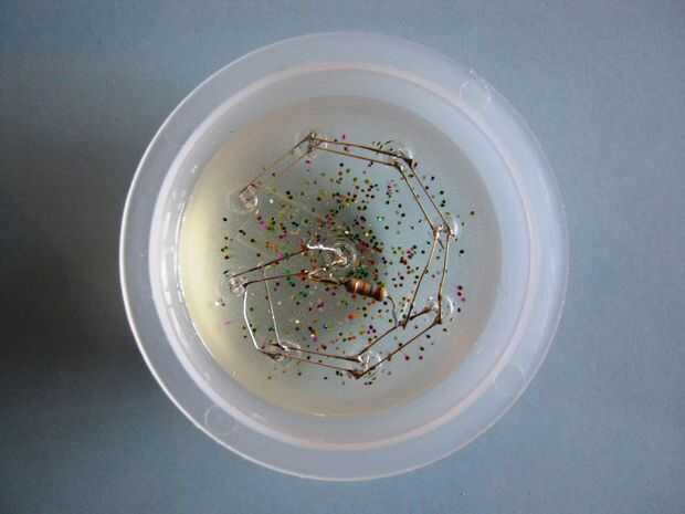 1. Antes de iniciar la siguiente capa, mire el conjunto LED y tome nota de la posición de que alambre perpendicular está conectado a la resistencia. Una vez que usted vierte la tercera capa de resina epoxi ya no podrás ver el cableado y necesitará saber cual cable es que más adelante en este paso.