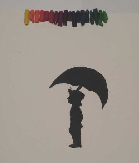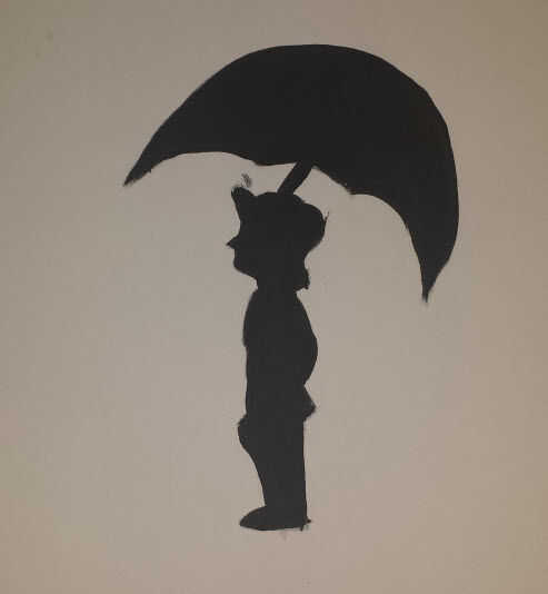 Ahora dibuje una silueta negra de un hombre sosteniendo un paraguas en medio de la página.