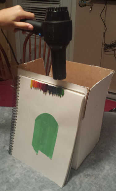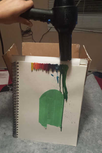 Y utilizando el secador en alto ajuste caliente, derrita las ceras en la silueta.