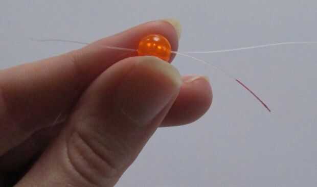 2. Pase el extremo derecho (claro) a través de la cuenta pasada (naranja) en la dirección opuesta