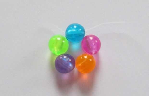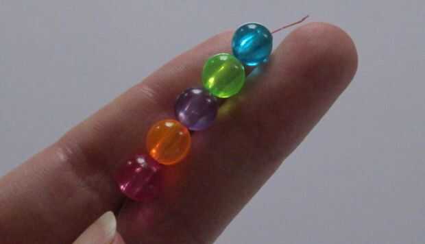 2. pasar el extremo derecho (claro) el último grano (azul) en la dirección opuesta