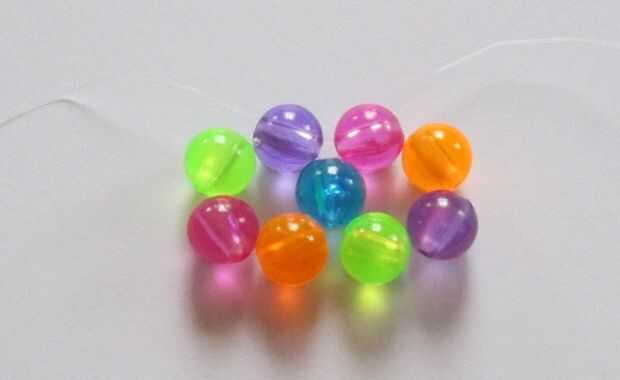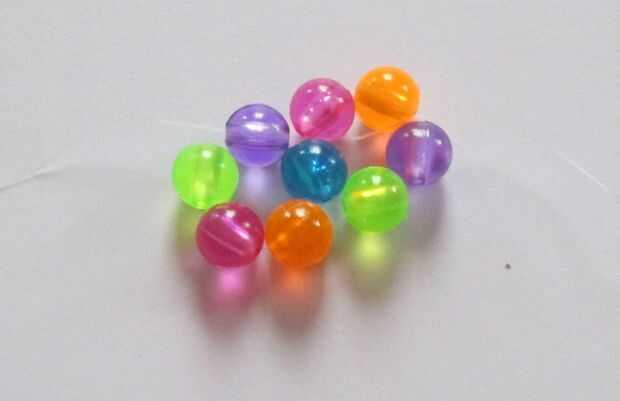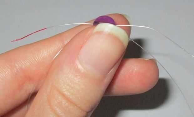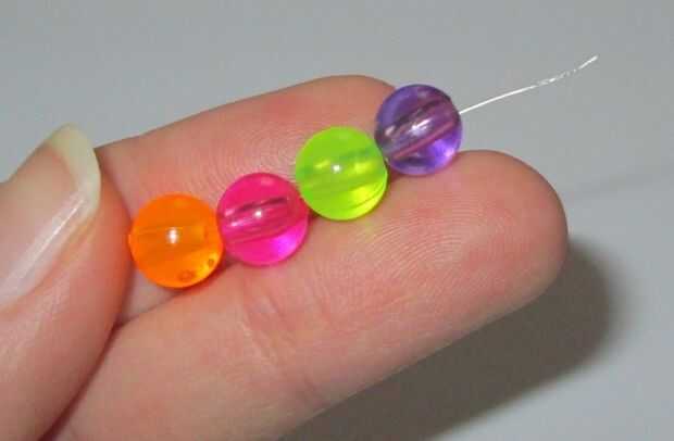 2. pasar el extremo derecho (rojo) el último grano (púrpura) en la dirección opuesta