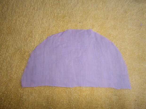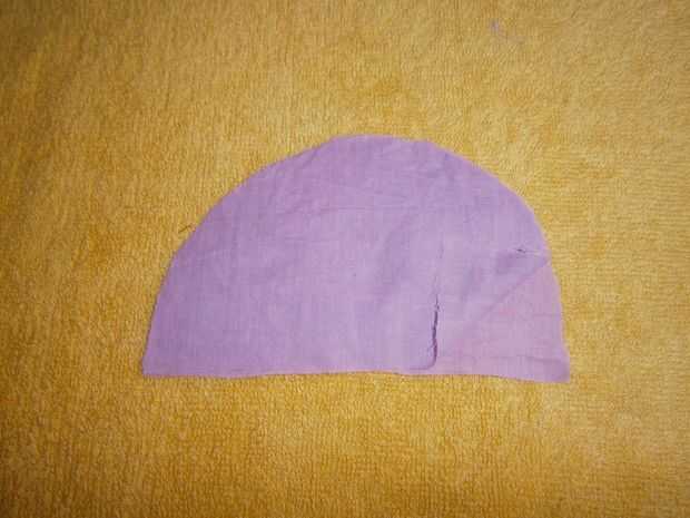 Tome un pedazo de tela y corte un semicírculo que es del tamaño de la bolsa.