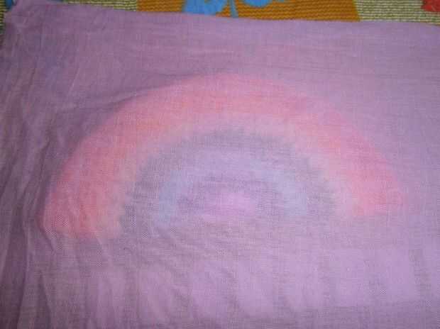 lo dibujó, lo soñado, puse.Yo de ganchillo un cuadrado granny en rojo, luego en naranja que yo de ganchillo alrededor de 3 lados entonces lo mismo con el amarillo, verde, azul púrpura entonces. Luego añadí púrpura en la parte superior de la camisa.