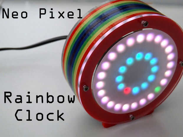 Este reloj fue hecho como regalo pero estaba tan contento con lo que pensé que haría un instructable para él. El reloj utiliza 2 Neo Pixel anillos de Adafruit Industries , así como el microcontrolador Arduino Mini Pro y un Reloj de tiempo Real DS1307 (RTC) para mantener la hora exacta. El tiempo se puede ajustar cuando se carga el código para el Arduino debería mantenerse por el RTC incluso si se pierde la energía, pero si como yo, está regalando el reloj como regalo a alguien que no sabe cómo programar un microcontrolador, y si por cualquier motivo necesitan para ajustar la hora, puede utilizar los dos botones en la parte posterior.