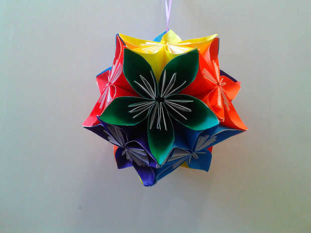 Kusudama (balones medicinales) son modelos de papel de los modelos más pequeño papel doblado que han sido cosidos o pegadas. Son tradicionales y datan de varios años, con un gran muchas variaciones diferentes de flores y formas geométricas que se utilizan para formar la bola sí mismo. Decidimos crear una flor de hermoso arco iris uno colgar desde el techo y alegrar nuestro espacio y a introducir algunos de nuestros miembros más jóvenes de makerspace origami modular y plegado generalmente de papel. Los pliegues son súper fáciles de recoger y pueden crear una obra de arte impresionante con algunas hojas de papel, pegamento y no tanto tiempo como usted podría pensar!