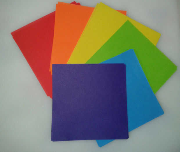 - Cuadrados de papel de origami: 10 hojas cada una de 6 tonos diferentes. Usted puede utilizar papel normal, pero porque va a ser más gruesa, será más difícil de trabajar con y a seguir buscando aseado. Las plazas pueden ser cualquier tamaño te gusta (obviamente cuanto más grande las plazas, cuanto mayor sea el móvil terminado) pero tienen que ser exactamente cuadrados y exactamente del mismo tamaño!