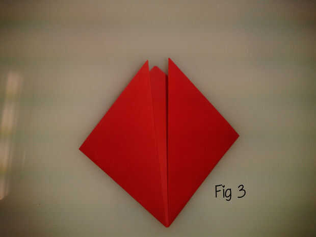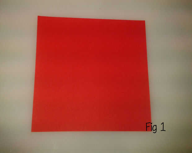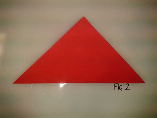 Primero, doble su hoja en papel (fig 1) diagonal, color lateral hacia el exterior, que forma un triángulo (Fig. 2)