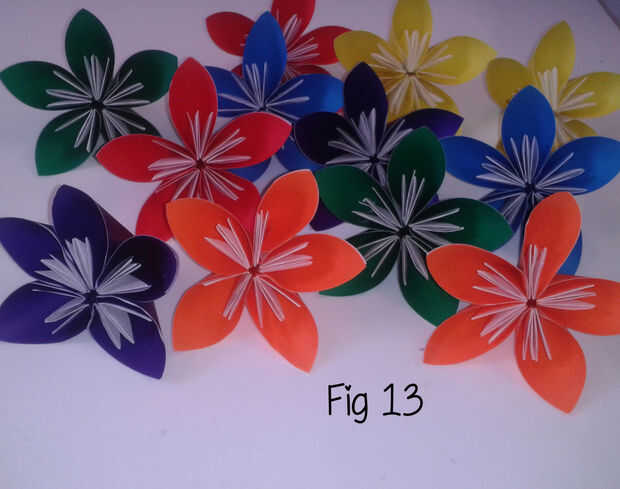 Camino por recorrer! Creó su primera flor! Estoy seguro que usted puede pensar en un montón de maneras de usar estas flores ya que son, pero para crear la bola de la flor, necesitamos otro 11 de ellos. Hemos creado 2 cada uno en 6 colores de arco iris, siguiendo los mismos pasos cada vez. Parece laborioso, pero usted conseguirá realmente rápido en lo que!