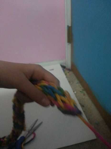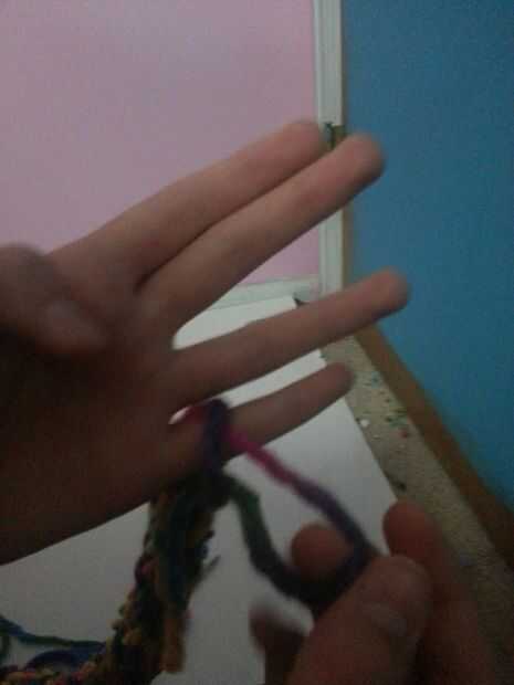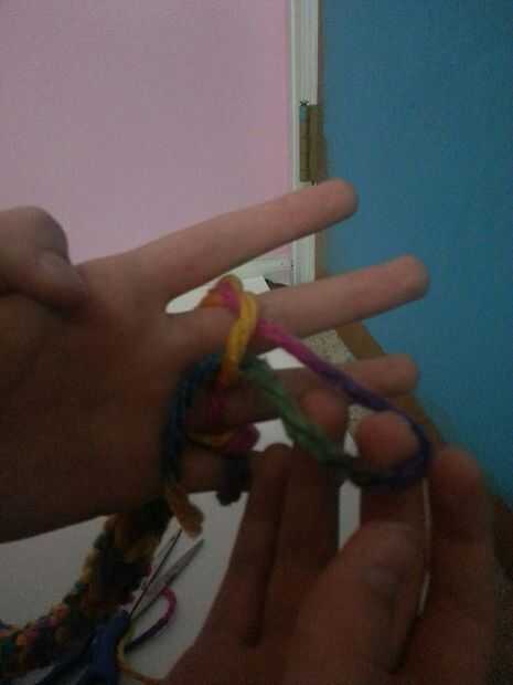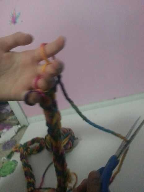 1.cut about 5 in. of yarn from the working yarn.
