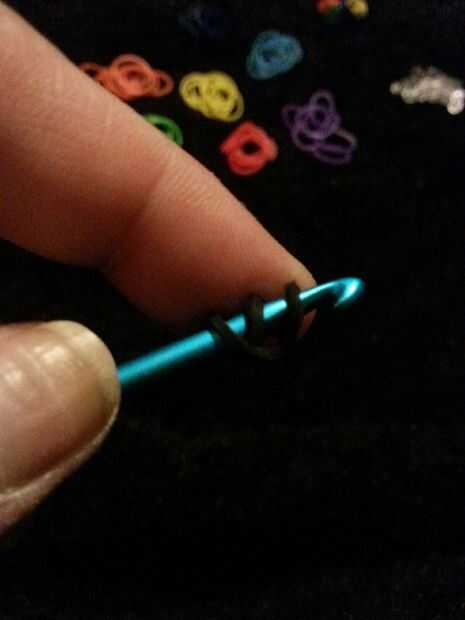 sus materiales. Necesita 45 claro o bandas, 2 bandas negras y 1 banda de su elección de colores. También necesitarás un gancho que se avecina, te recomiendo un metal.Paso 1: que se avecina Asegúrese de que su telar semicírculos son hacia usted.Paso 2