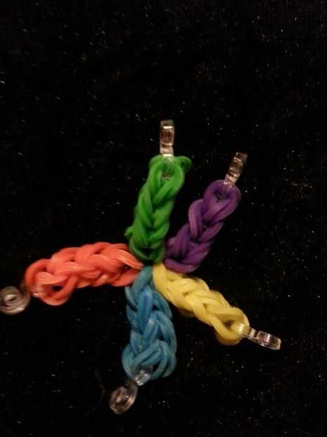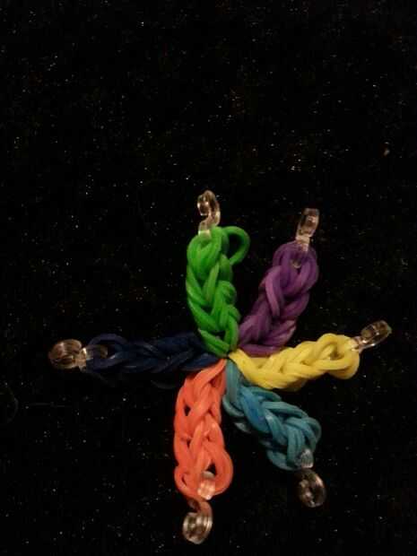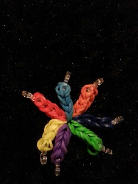 paso 3 con los siete de sus colores, pasando a través y después de cuatro capas, poner un clip en el extremo. su proyecto debe parecerse a mi última foto.