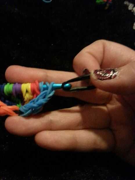 sus materiales. Necesita 45 claro o bandas, 2 bandas negras y 1 banda de su elección de colores. También necesitarás un gancho que se avecina, te recomiendo un metal.Paso 1: que se avecina Asegúrese de que su telar semicírculos son hacia usted.Paso 2